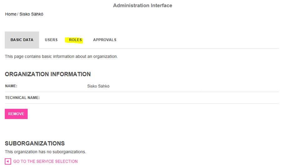 The user right has been removed. You can access e-services by clicking ’Move to Service Selection’.