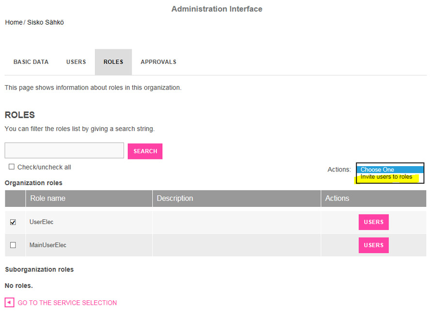 The user right invitation has been sent. You can access e-services by clicking ’Move to Service Selection’.